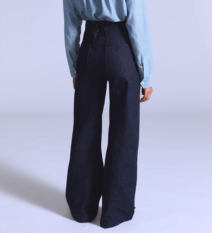 Levi's® Blue Tab™ is an elevated collection that infuses our iconic denim heritage with traditional craftsmanship. Expect thoughtful details, sharp tailoring and finishes that are rich with character. Made with a flattering high rise, our Mariner jeans feature wide-leg cut and classic, non-stretch denim.