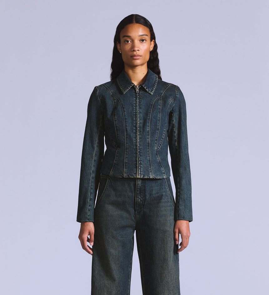 Levi's® Blue Tab™ is an elevated collection that infuses our iconic denim heritage with traditional craftsmanship. Expect thoughtful details, sharp tailoring and finishes that are rich with character. With its ultra-flattering slim fit, our Moto Jacket is designed with seam detailing and a classic zip-up front.