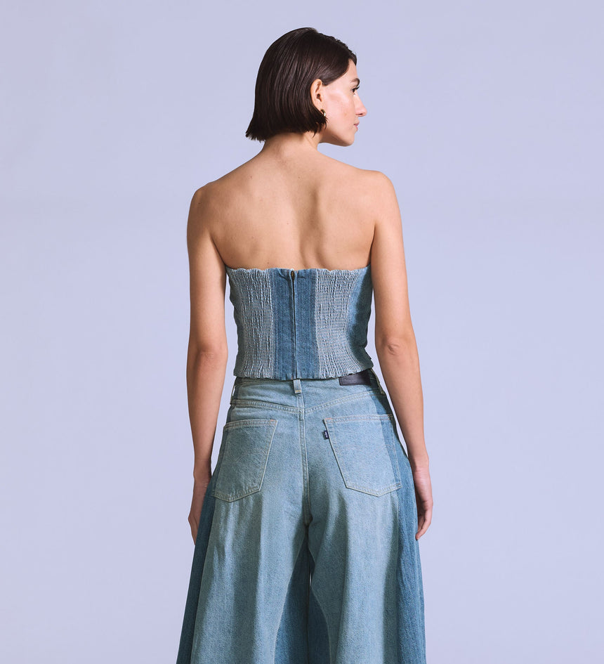 Levi's® Blue Tab™ is an elevated collection that infuses our iconic denim heritage with traditional craftsmanship. Expect thoughtful details, sharp tailoring and finishes that are rich with character. Our Roper Bustier features flattering seam detailing and a slim fit that hugs just right. Plus, we crafted it with premium Japanese fabric.
