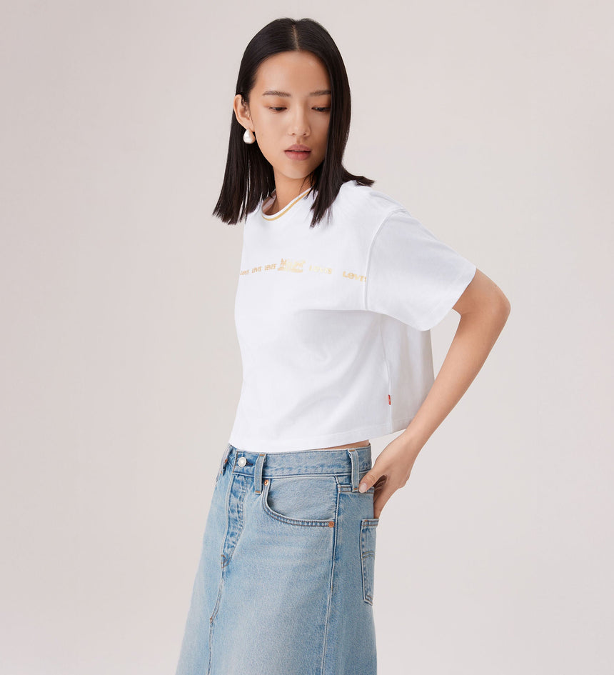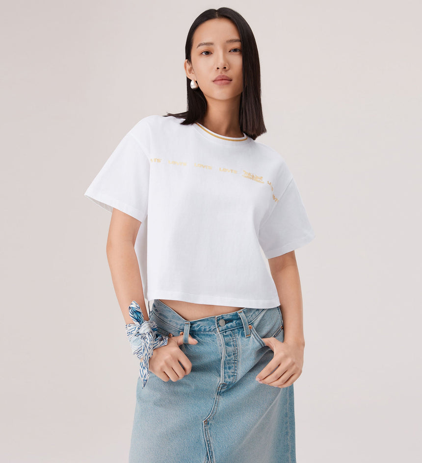 It’s the Year of the Horse and time to celebrate. Out with the old and into the new—fresh Levi’s® styles bring good luck. A twist on our Short-Sleeve Cropped Tee. We designed this limited-edition piece with a loose fit and a gold Levi's® print across the chest.