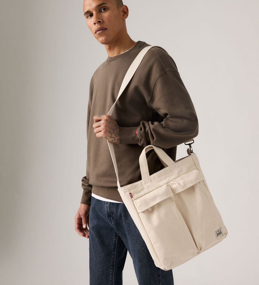 - Features tote handles and a shoulder strap