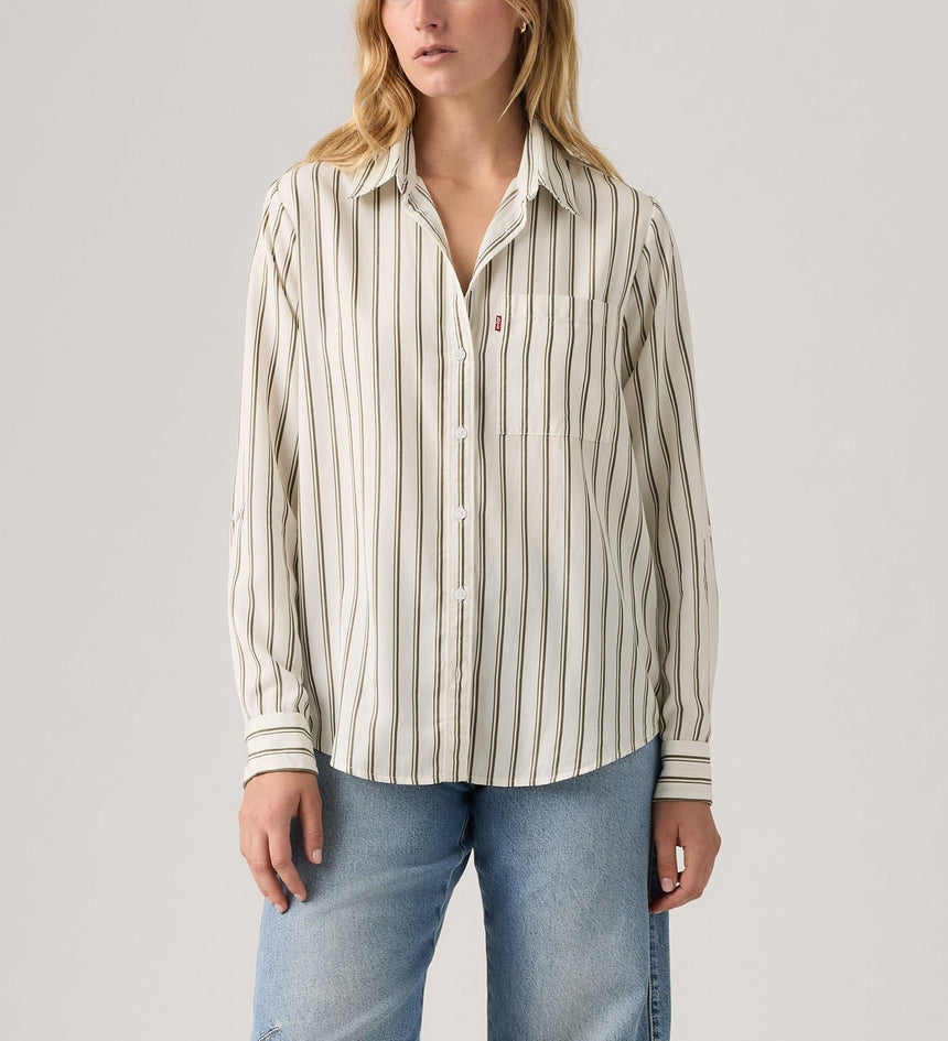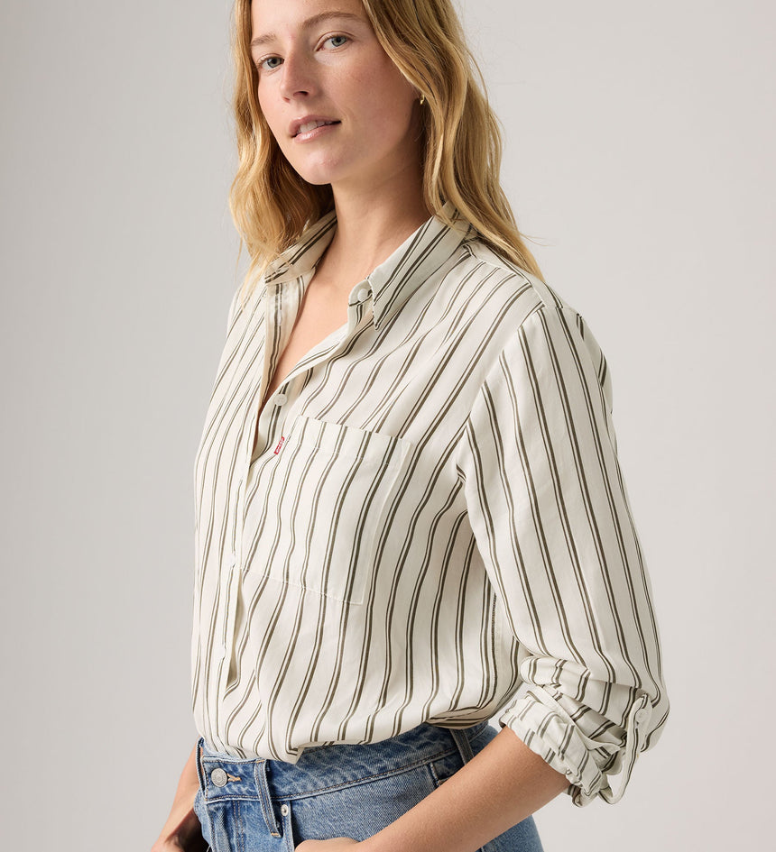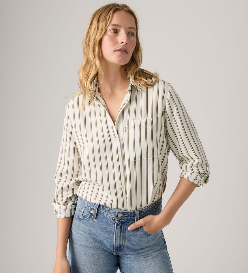 Utilitarian design meets day-to-day style. We made our Darlene Utility Shirt with a button-up front, a classic chest pocket and rolled up sleeves for getting the job done.