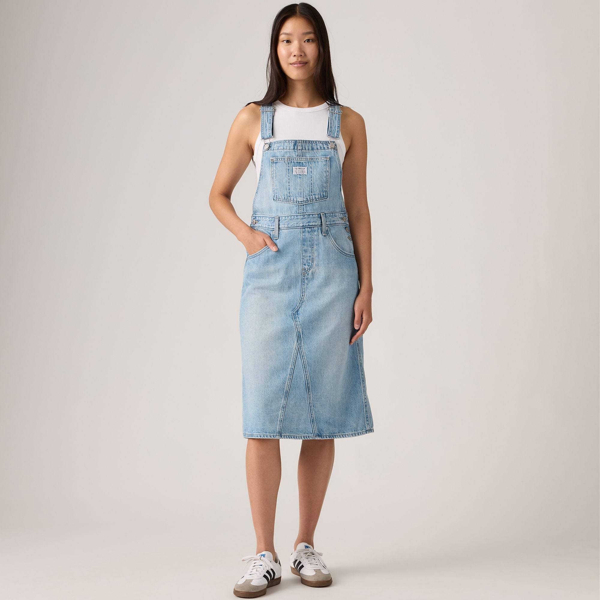 Your favorite overalls—in dress form. We designed our Decon Skirtall with adjustable straps, button-up sides and an A-line shape.