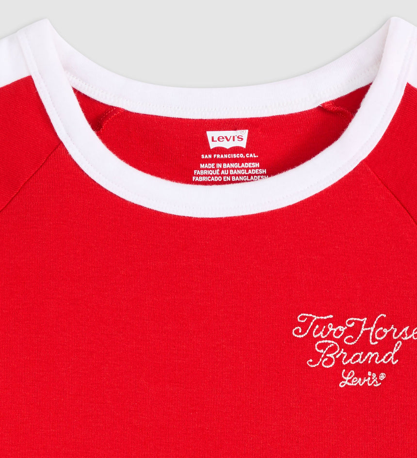 There's nothing basic about our Graphic Riley Raglan Tee. Cut with a slim fit, we designed it with easy short sleeves, a ringer design and topped it off with a one-of-a-kind Levi's® logo.