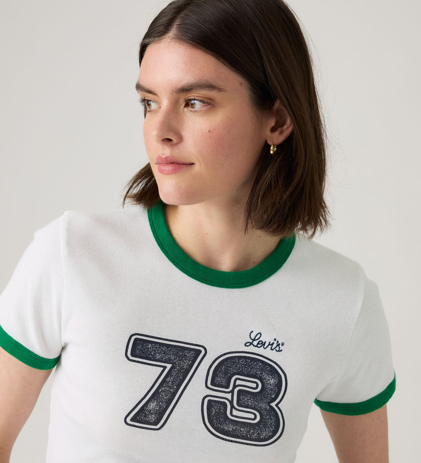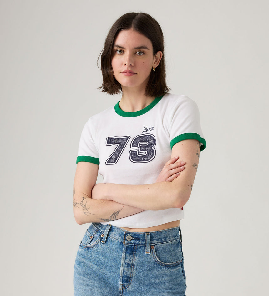 Can something be both instantly iconic and super playful? We think so. Case in point, our Graphic Mini Ringer tee. This cute crewneck pairs a cropped fit with bold Levi's® branding, thus striking that elusive balance between classic and prep.