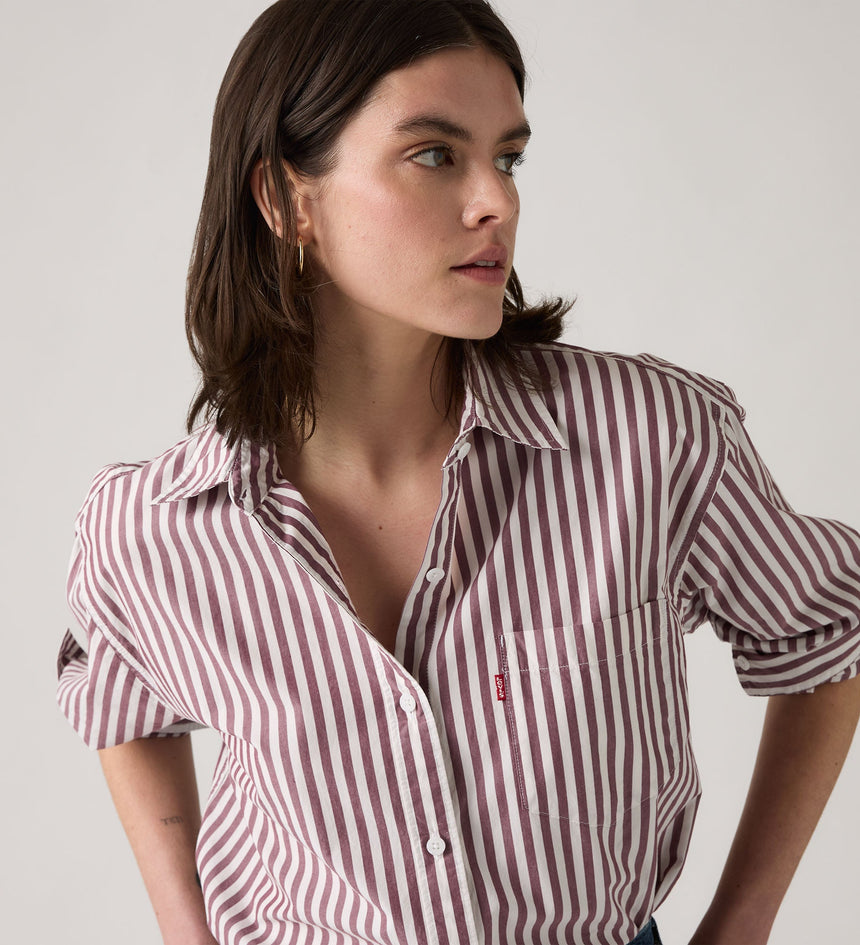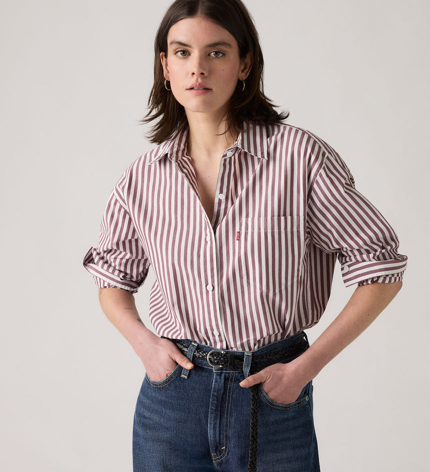 Keep it laid-back with our Harlie Boyfriend Shirt. It's a relaxed-fitting, do-it-all wardrobe stable that looks equally good by itself or thrown over your favorite tee.