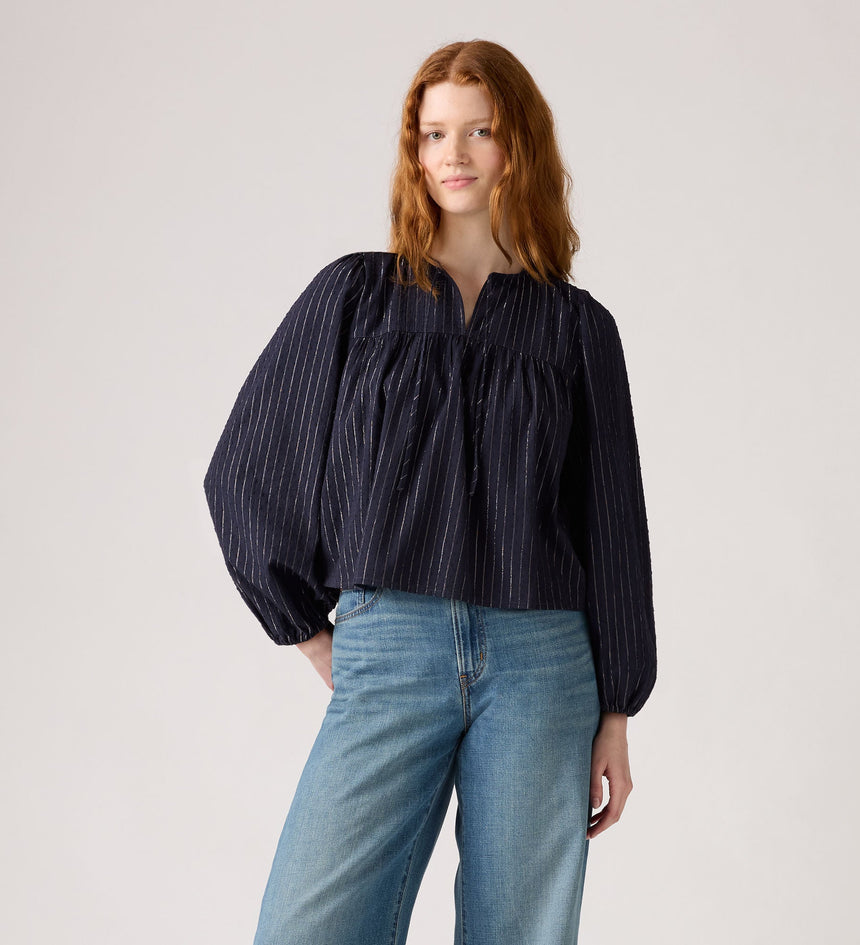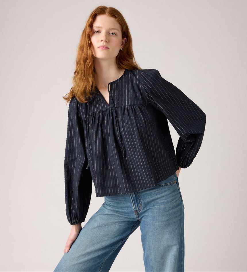 Our Josephine Long-Sleeve Holiday Shirt just feels special. We gave it a notched V-neckline, voluminous sleeves and a perfectly relaxed fit.