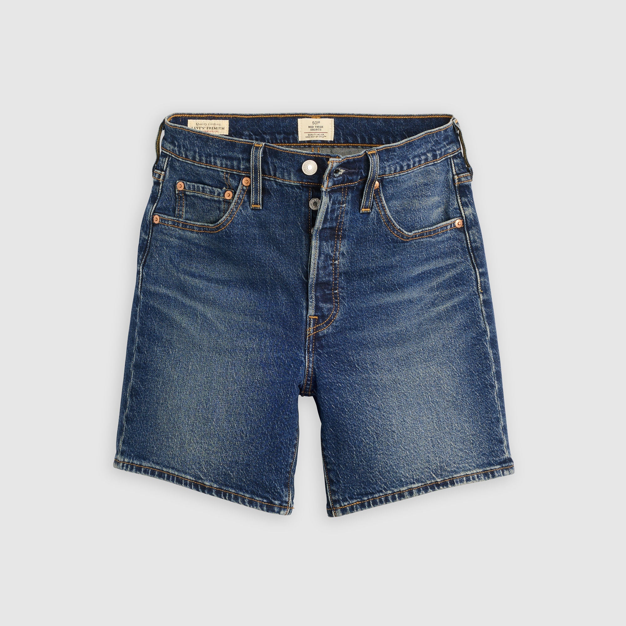 The first ever jean shorts. Modeled after the 501® Original jeans, these Mid-Thigh Shorts were made with our iconic vintage-inspired fit, a flattering high rise and a longer inseam. To this day, they’ve never gone out of style. And they never will.