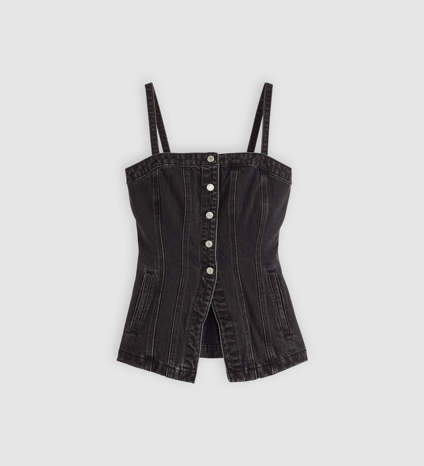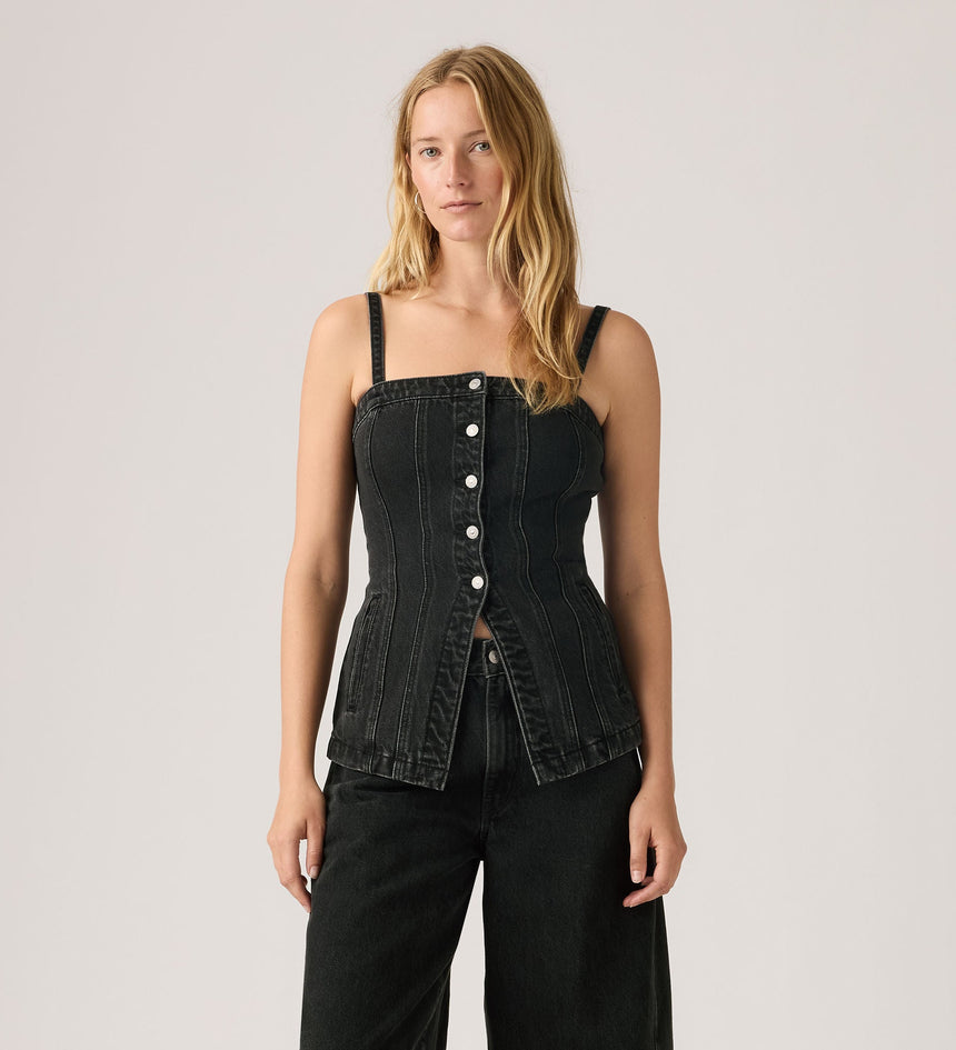 Bold, flattering and just the right amount of edge. We designed this Tailored Bustier Top with a soft square neckline, a button-up front and a flattering slim fit.