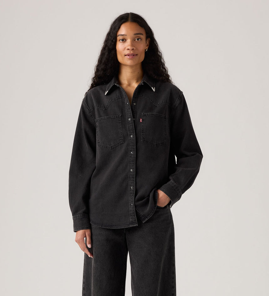 Cowboy boots not included. Our Teodora Western Shirt is a feminine take on a western staple, with a classic snap-button front, two patch pockets, a relaxed fit and a western-inspired yoke design.